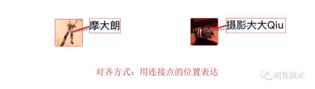 比如上图这个case,如果我们还是连接两个控件的中心点的话(图中蓝色虚线),那这左右两边的图就是指不同的布局(因为两个控件的角度和距离都不一样)。
