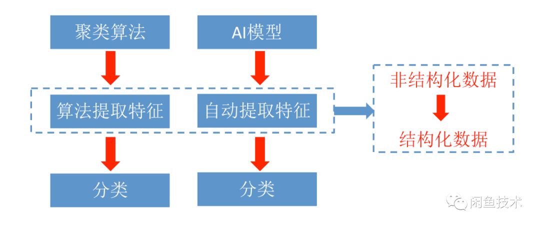 首先我们需要将非结构化数据转换为结构化数据(或者叫特征提取),这个思路可以参考图片分类任务的做法,不管是聚类算法还是AI模型,都是先做特征提取,再进行进一步处理,实际上做的就是非结构化数据转换成结构化数据。