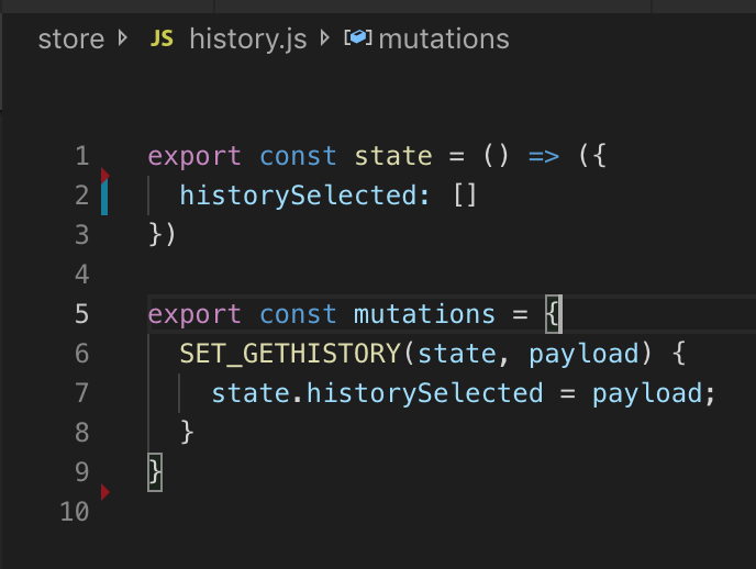 在store下创建history.js 代码如下