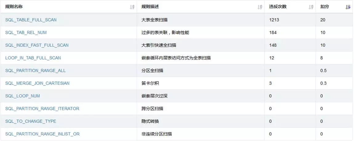 规则总分,跟规则配置关系很大。如关闭规则或将违反规则的阀值调低,都会提高分数。这要根据系统自身情况来确定。同一规则,对不同系统使用,其阀值是可以不同的。举例而言,数据仓库类的应用,大表全部扫描就是一个比较正常的行为,可考虑关闭此规则或将单次违反阀值、总扣分上限降低。