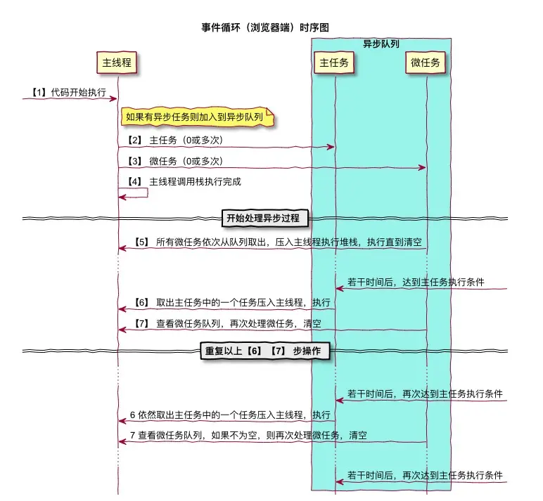 异步任务分为task(宏任务,也可称为macroTask)和microtask(微任务)两类。 当满足执行条件时,task和microtask会被放入各自的队列中等待放入主线程执行,我们把这两个队列称为Task Queue(也叫Macrotask Queue)和Microtask Queue。
