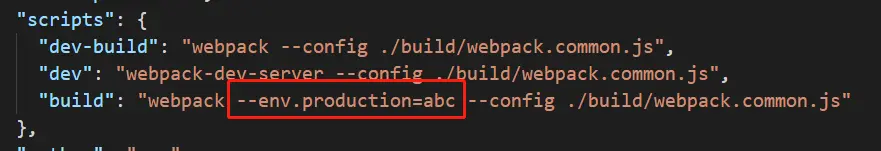 现在打包的时候,开发环境只需要指向webpack.common.js文件即可,而打包线上环境的代码,需要加一个--env.production参数