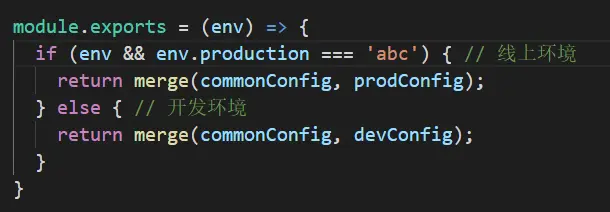 然后我们就可以通过传参来判断现在是打包哪一个环境的代码,去对应merge不同环境的配置文件。
