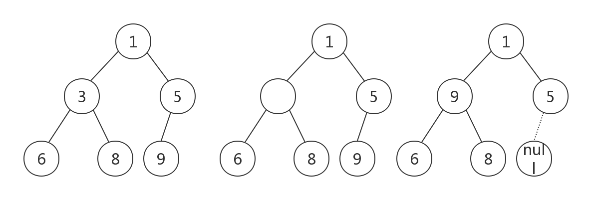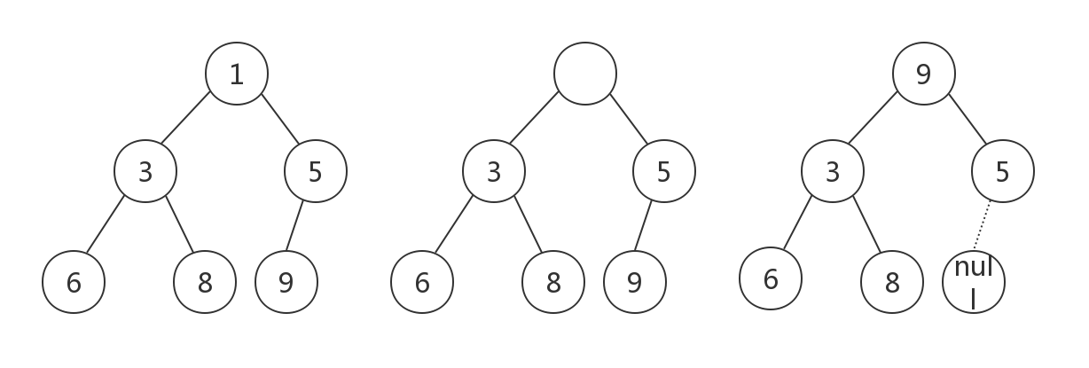 siftDown(i, moved); // 将队尾元素插入 i 位置,再自上而下堆化