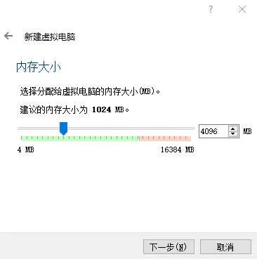 2.设置分配给虚拟电脑的内存,这个版本的建议内存为1G,可以根据自己电脑配置来决定,建议最少分配4G。