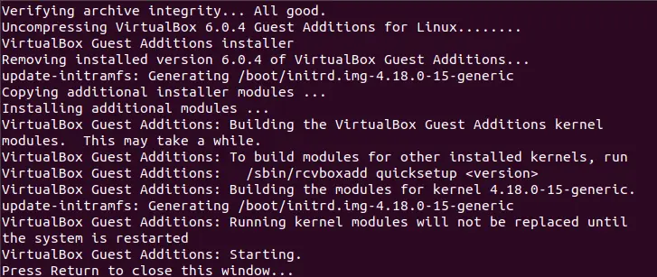 有如下的提示就说明安装成功了,重启虚拟机。