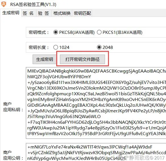 复制 应用私钥2048.txt 中的内容到merchant_private_key中。
