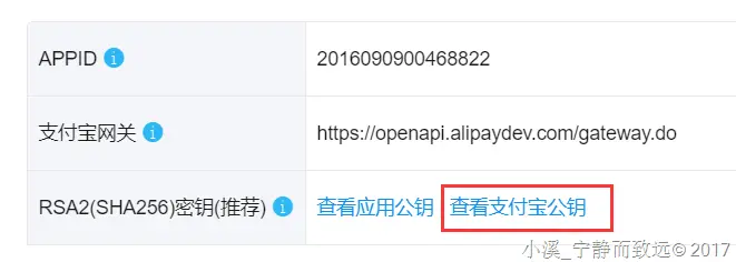 点击如上图链接,复制弹出框里面的内容到alipay_public_key。