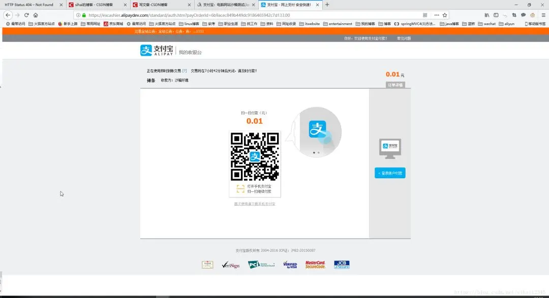 然后,我们选择支付宝支付,进入到了我们支付的页面了,大功告成!
