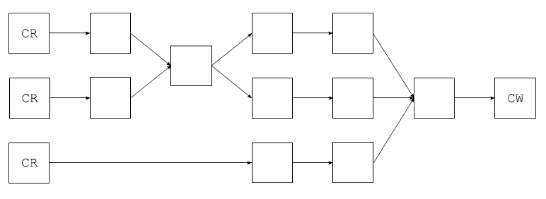 尽管典型 ASM 应用程序中的大多数组件体系结构都非常简单,但还是可以想象一下类似于 如下所示的复杂体系结构,其中的箭头表示在类分析器、写入器或转换器之间进行的基于事件或 基于对象的通信,在整个链中的任何位置,都可能会在基于事件与基于对象的表示之间进行转换: