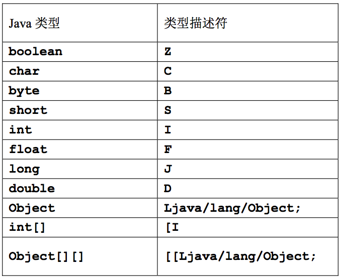 内部名只能用于类或接口类型。所有其他 Java 类型,比如字段类型,在已编译类中都是用 类型 述符表示的。