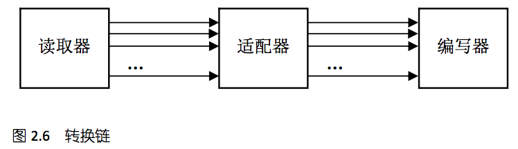 将几个适配器链接在一 起,就可以组成几个独立的类转换,以完成复杂转换。还要注意,转换链不一定是线性的。我们可以编写一个 ClassVisitor,将接收到的所有方法调用同时转发给几个 ClassVisitor: