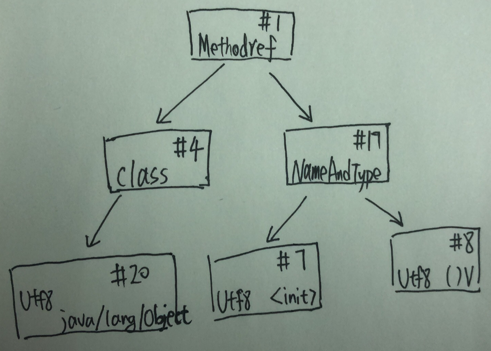 - 读入00 01,这是invokespecial的参数,查常量池得0x0001对应的常量为实例构造器<init>方法的符号引用。