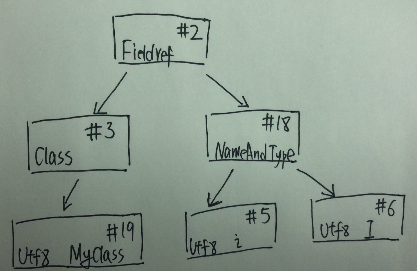 | name_and_type_index | name_and_type_index的值必须是constant_pool表中的一个有效索引;这索引值上的对应的常量池条目(The constant_pool entry)也一定是CONSTANT_NameAndType_info结构;这个条目也是具有字段或方法作为成员的类或接口类型 |