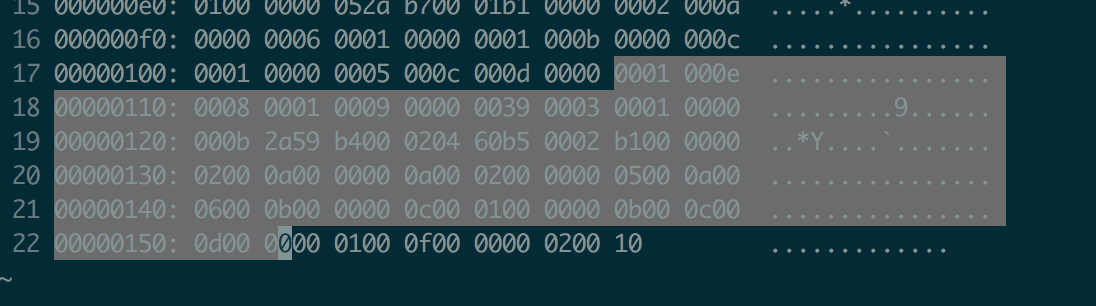 不要紧,在vim中输入命令:%! xxd,展现这样的内容:
