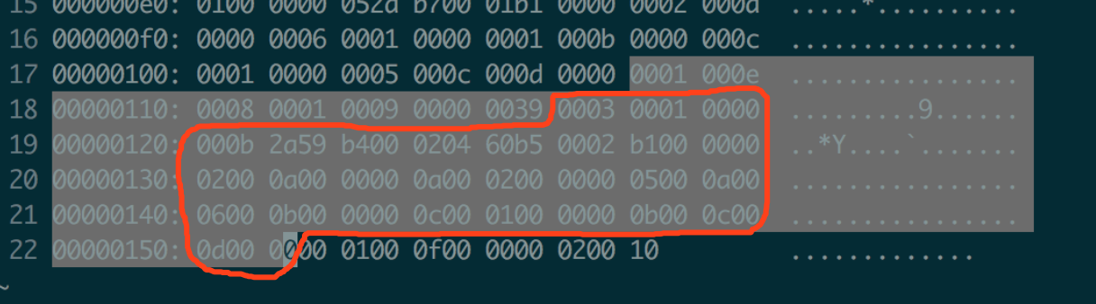 其中00 0b00 0000 0c00 0100 0000 0b00 0c00 0d00 00对应的是