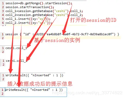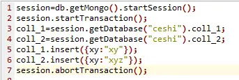 我们先试试在普通的单点模式下,步骤如下,事务的管理是基于session上解决的。我们可以看出报错了,说事务只能在复制集下才能生效,并不支持在单点模式下。