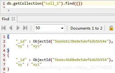 先看一下coll_1和coll_2里面的数据,结果如下图。