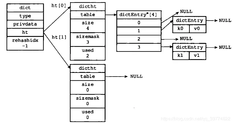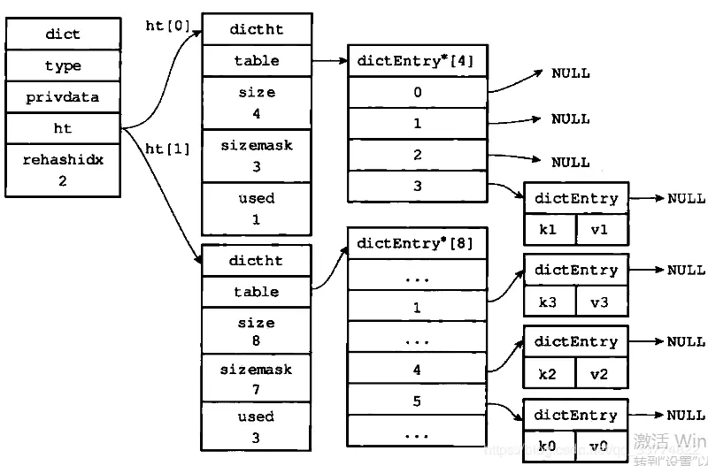 1.确定ht[1]的分配空间。(在重新散列之前,数据都是放在ht[0]中的,ht[1]为空。)