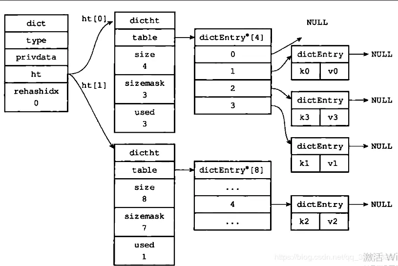 这么做的原因在于,如果ht[0]如果只保存了四个键值对,那么服务器可以在瞬间完成,但是如果里面保存的是四百万,四千万的键值对,那么一次性将这些键值对全部散列到ht[1]中,这个计算量还是很庞大的。