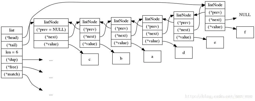 } listNode;只要有多个节点就可以组成一个链表了,但是redis再在外面封装了一层,也就是使用adlist.h/list来实现,这样操作起来更加方便。