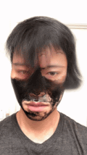 一旦我用面膜覆盖脸部的其余部分,滤镜就会停止工作。 有趣的是,我脸部的裸露区域似乎还是会被检测为面部,滤镜会继续执行该区域的面部样式转换。 你可以看到头部和面部的渲染效果像伊藤润二的恐怖故事 一样闪烁。