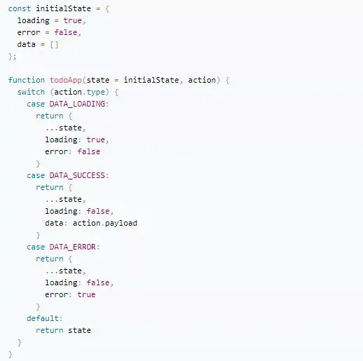 - 使用 AsyncTuple.handleAll 处理 LOADING/SUCCESS/ERROR 这 3 种 action,handleAll 的代码很简单,使用 if 判断 action.type 的后缀即可,源码【2】。