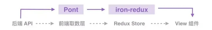 除了上面讲的 iron-redux,我们还引入 Pont 【5】实现前端取数,它可以自动把后端 API 映射到前端可调用的请求方法。