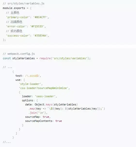 - JS 和 CSS 变量共享。关于 JS 和 Sass/Less 变量共享,我们摸索出了自己的解法: