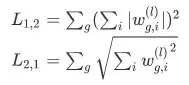 因此,在L1和L2正则的基础上,人们引入L21正则(group lasso)和L2正则(exclusive sparsity),分别表示如下:
