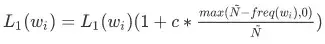 特征频次和基于MLE的参数估计的置信度相关,出现次数越低置信度越低。如果在纯频率统计基础上加入一个先验分布(正则项),当频率统计置信度越低的时候,越倾向于先验分布,相应的正则系数要更大。我们经过多个实验,给出了以下的经验公式: