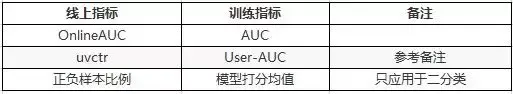 训练级监控: AUC, User-AUC(参考备注),loss, 模型打分均值(与样本的正负比例对齐),异常信息。
