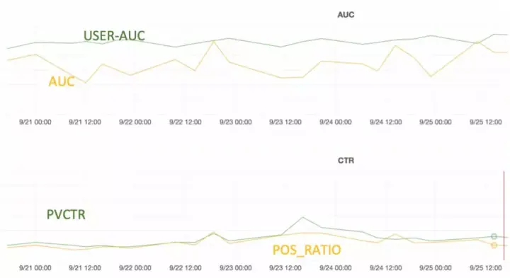 online learning的稳定性非常重要。我们将线上真实效果,与实时模型生成的效果,进行了严密的监控,一旦样本偏差过多,就会触发报警。