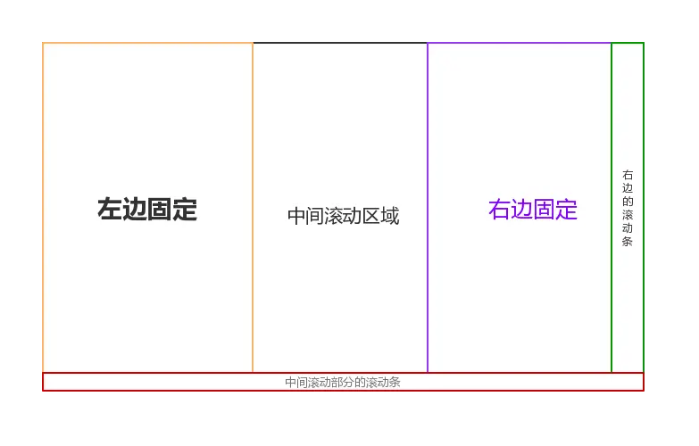 现在整体就可以分为三部分了。左列固定,中间滚动区域,右列固定。