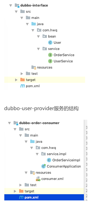 dubbo-interface这个项目是一些基础的或者公共用到的放在这里,这里特别需要注意的是其他服务需要引用这个服务,必须先用maven-package命令打包然后再引入方可使用。