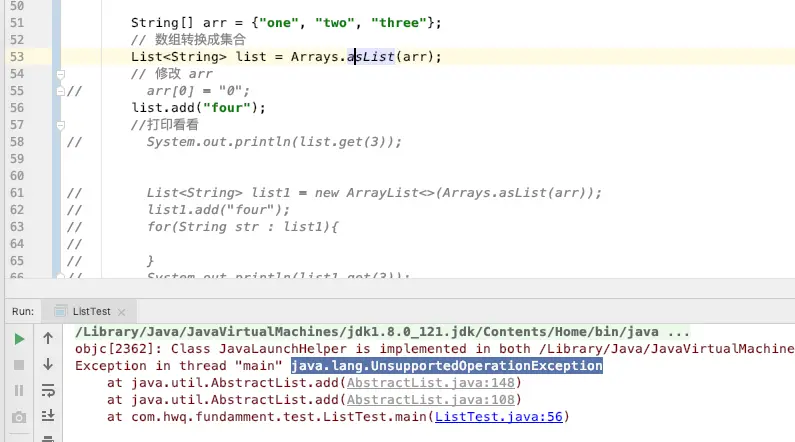 可以看到 new ArrayList<>(a) 其实是一个内部类,而且参数是array一个数组, 如果真的想在转化后的集合中添加元素,用以下方法