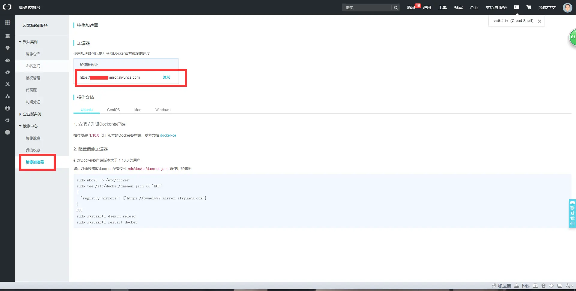 增加 xxxxxxx.mirror.aliyuncs.com; ps:阿里云申请的容器镜像加速私人地址