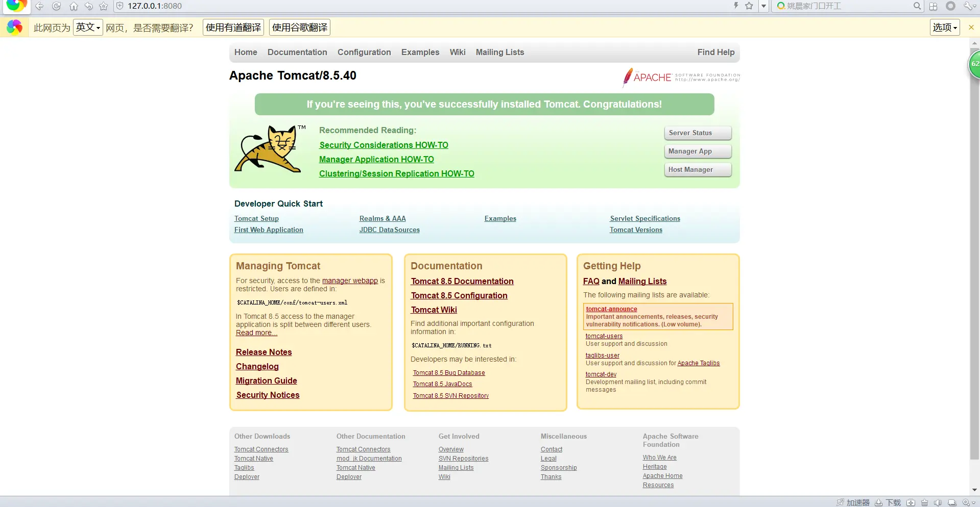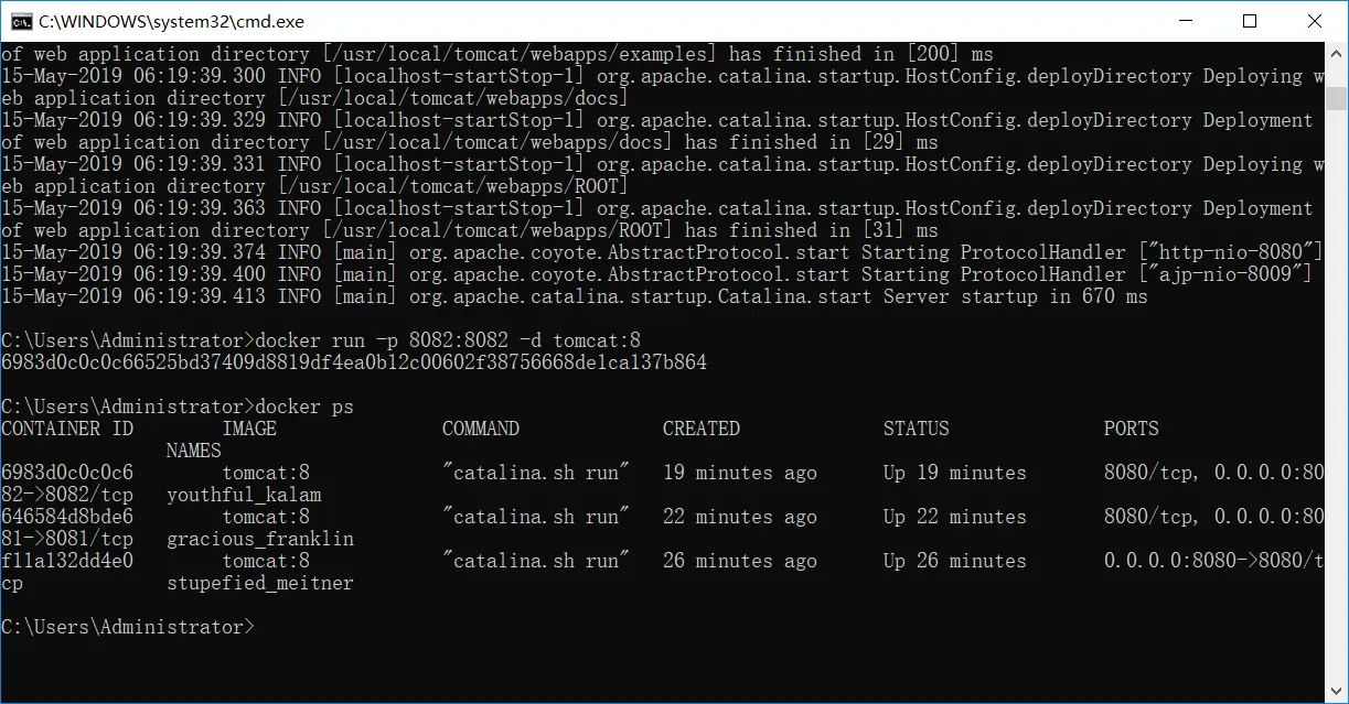 启动tomcat 并将8080端口映射至宿主机的8080 端口