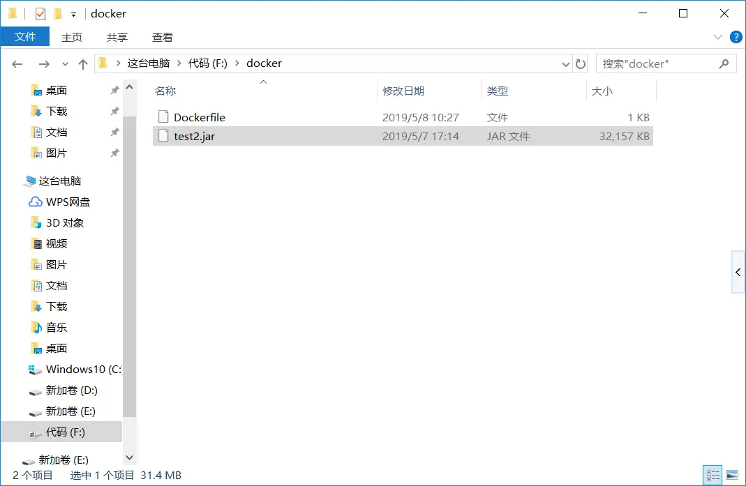COPY:将DockerFile文件目录下的 test2.jar 文件拷贝至镜像内的工作目录下并命名为 app.jar