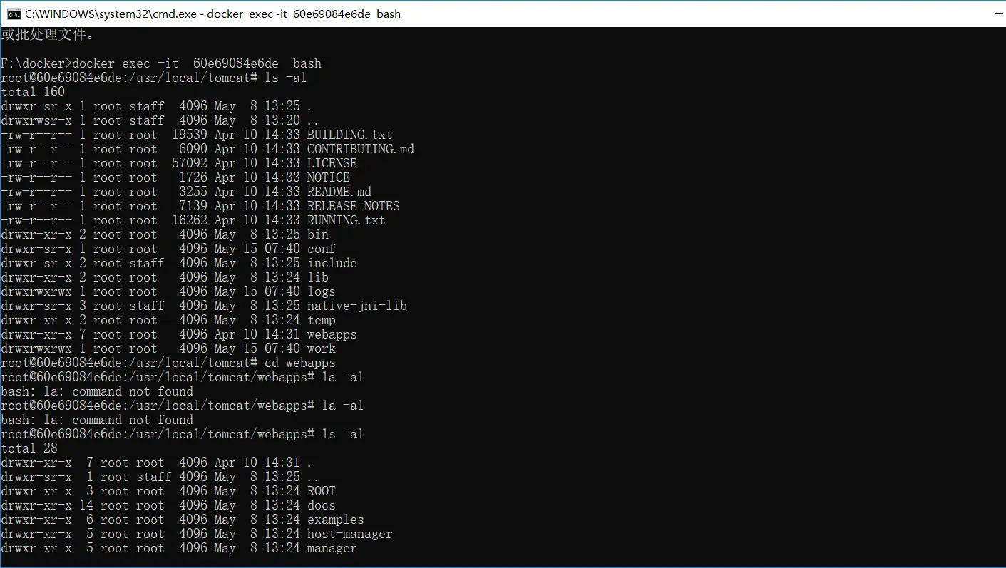 进入容器内 到 tomcat > webapp 下查看所有文件