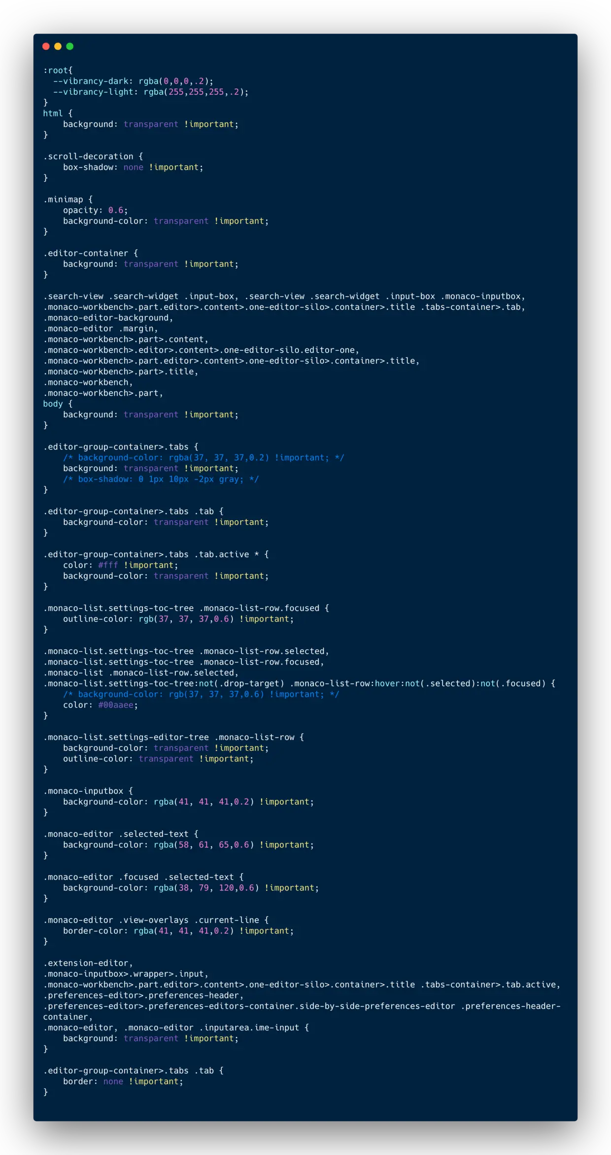 以上教程是基于 MacOS 的,Linux 用户如何开启透明请参考;Windows 的electron暂不支持vibrancy模式,可以使用插件 GlassIt-VSC 设置透明。