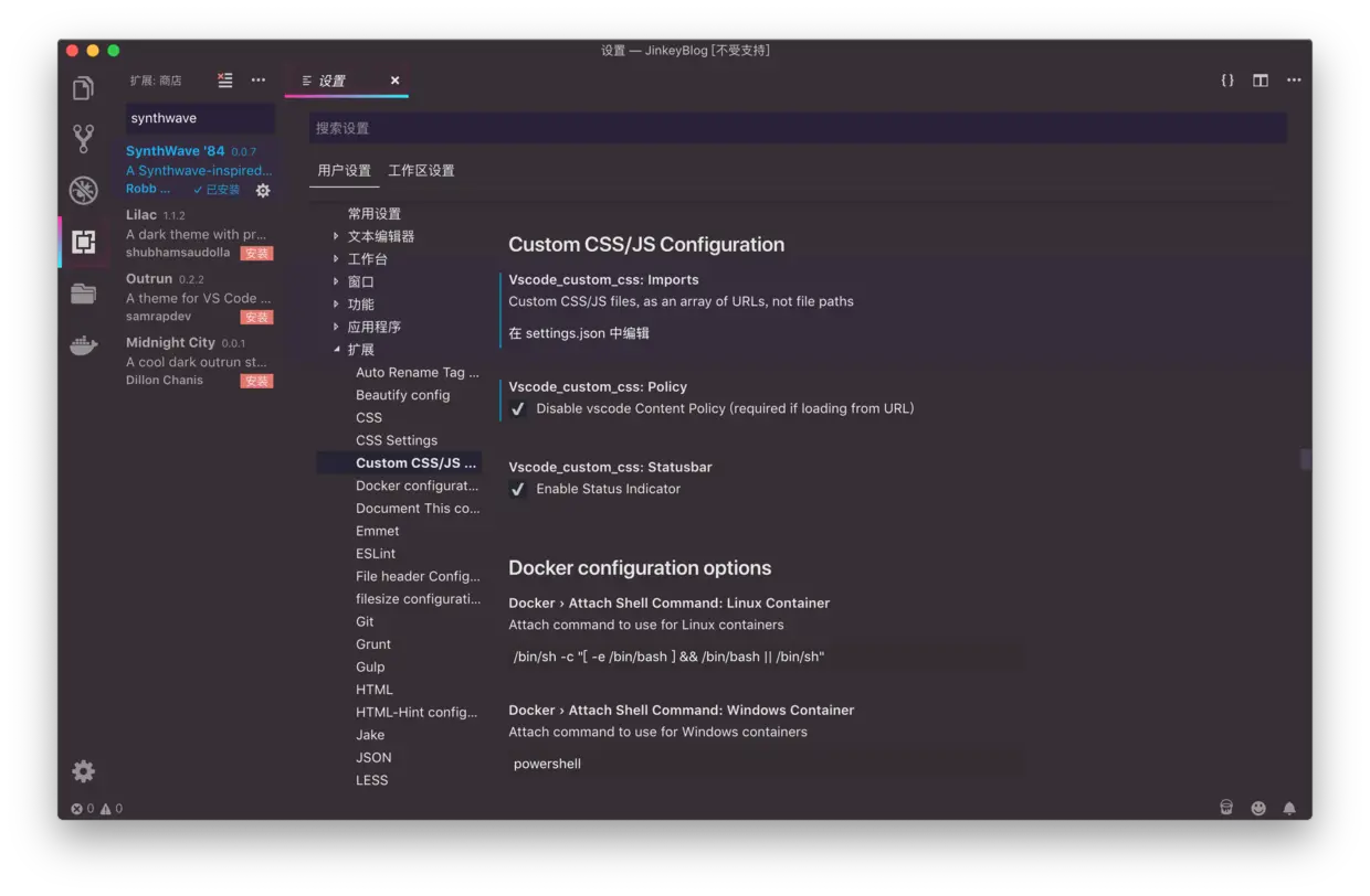 文字发光样式,样式请在 Github 获取。如果要不发光的,可以使用 synthwave84-noglow.css。可以 watch github.com/robb0wen/sy… 保持更新通知。