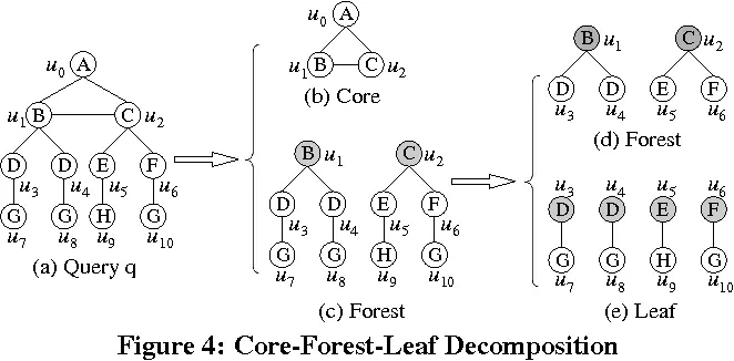 - 将查询图上的点分成三种:核心点(Core)、森林点(Forest)和叶子点(Leaf)