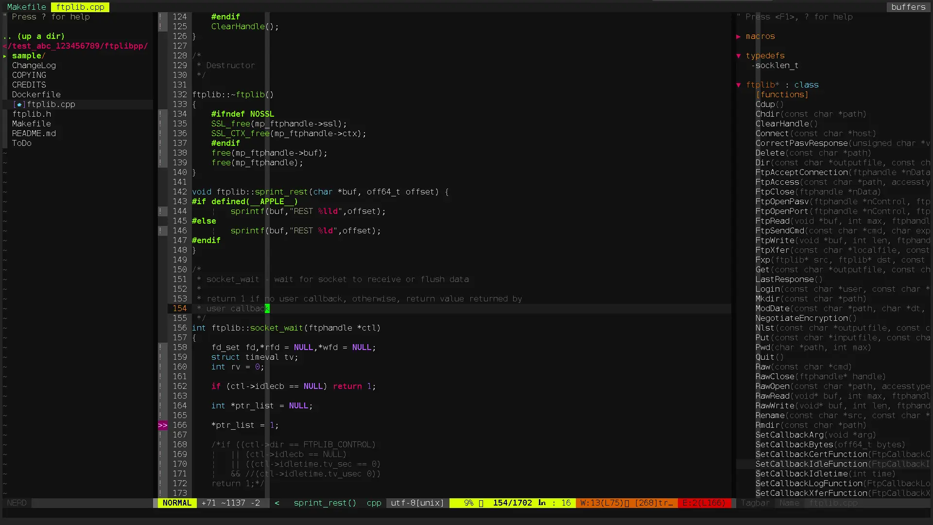 我使用的 vim 进行 python 和 C++ 进行后台开发,最主要的功能还是不能没有,提示补全,定义跳转,关键词搜索,语法高亮,语法检查,缩进折叠,函数展示大纲,文件模板,目录树等等,而我的 vim 现在也可以方便完成这些功能。