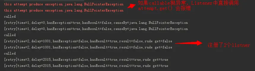 System.out.print("[retry]time=" + attempt.getAttemptNumber());