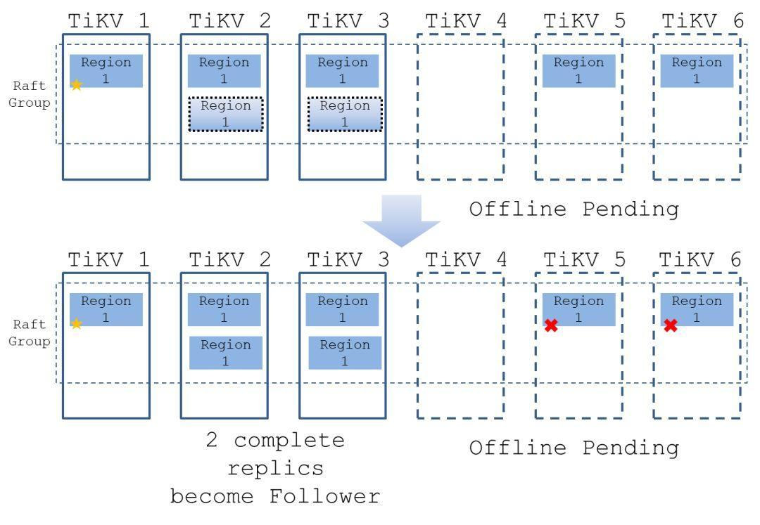 选举会增加 label 限制,确保 leader 最终在保留的 TiKV 中产生;