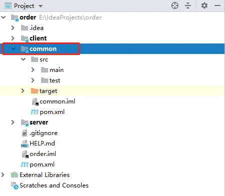 至此,common模块就创建成功了,你会发现order根目录下多了一个common子模块