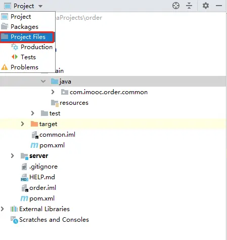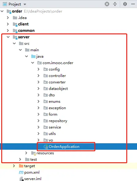 补充说明:我在创建com.imooc.order.common包时遇到了一个问题,就是右键java文件夹然后选New->Package并创建com.imooc.order.common时,创建出来的包路径时没有层次结构的,也就是说IDEA单纯的为我创建了一个名为com.imooc.order.common的文件夹