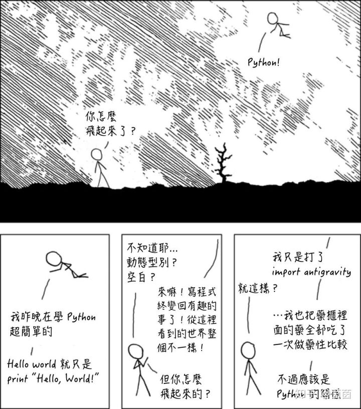 多年前的漫画,那时候Python还没有现在这么火,不过,Python的确是门神奇的语言,一对比就看出来了。