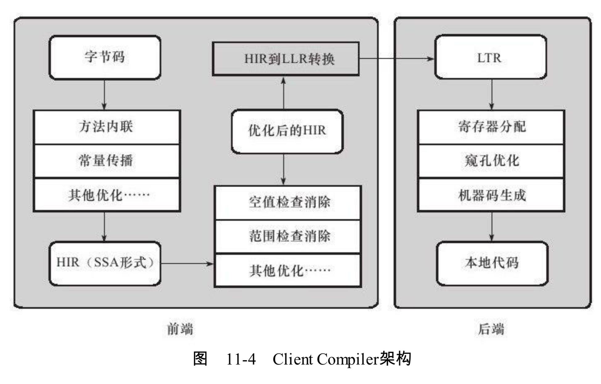 - 一个平台独立的前端将字节码构造成一种高级中间代码表示(High-Level Intermediate Representation,HIR)